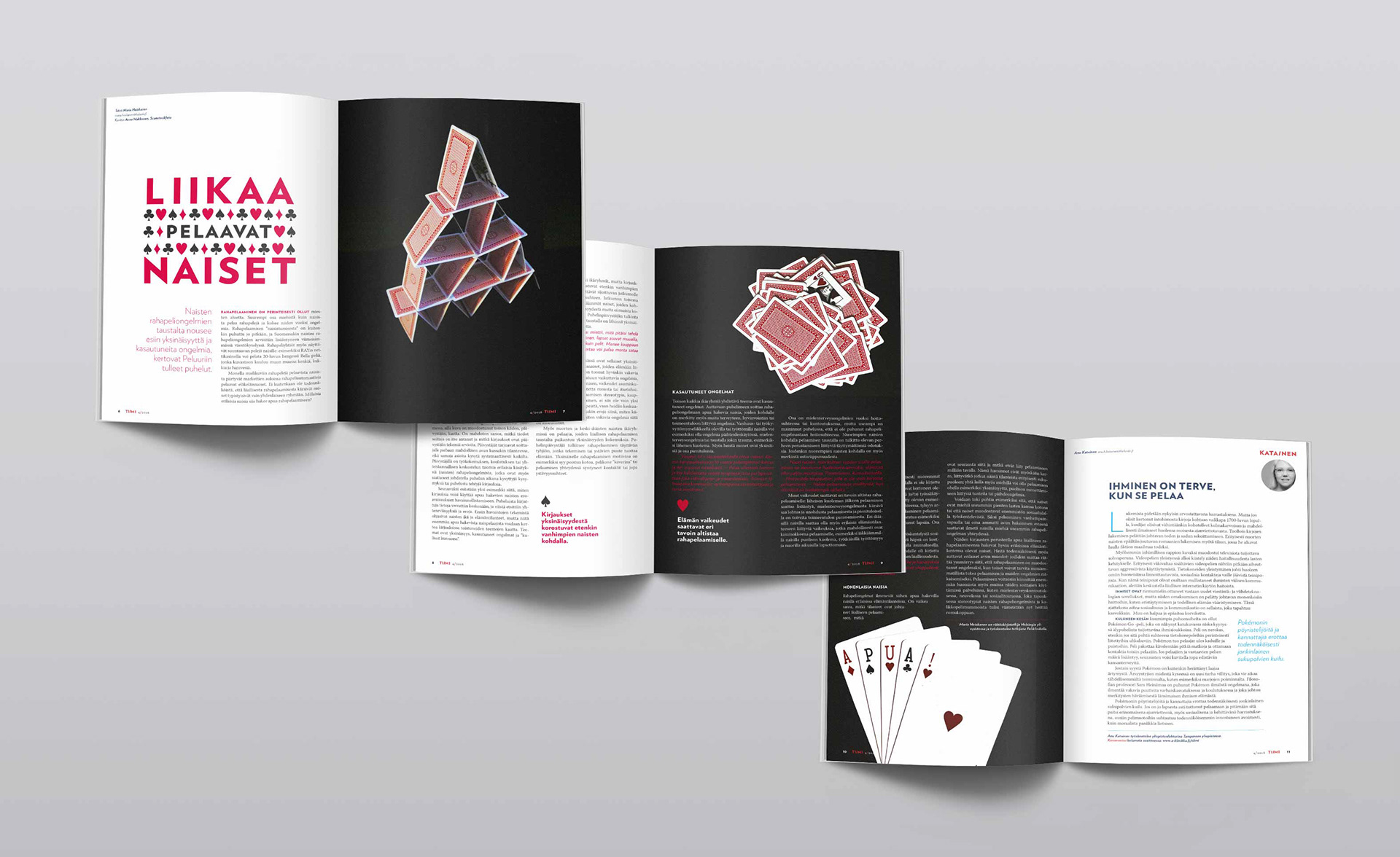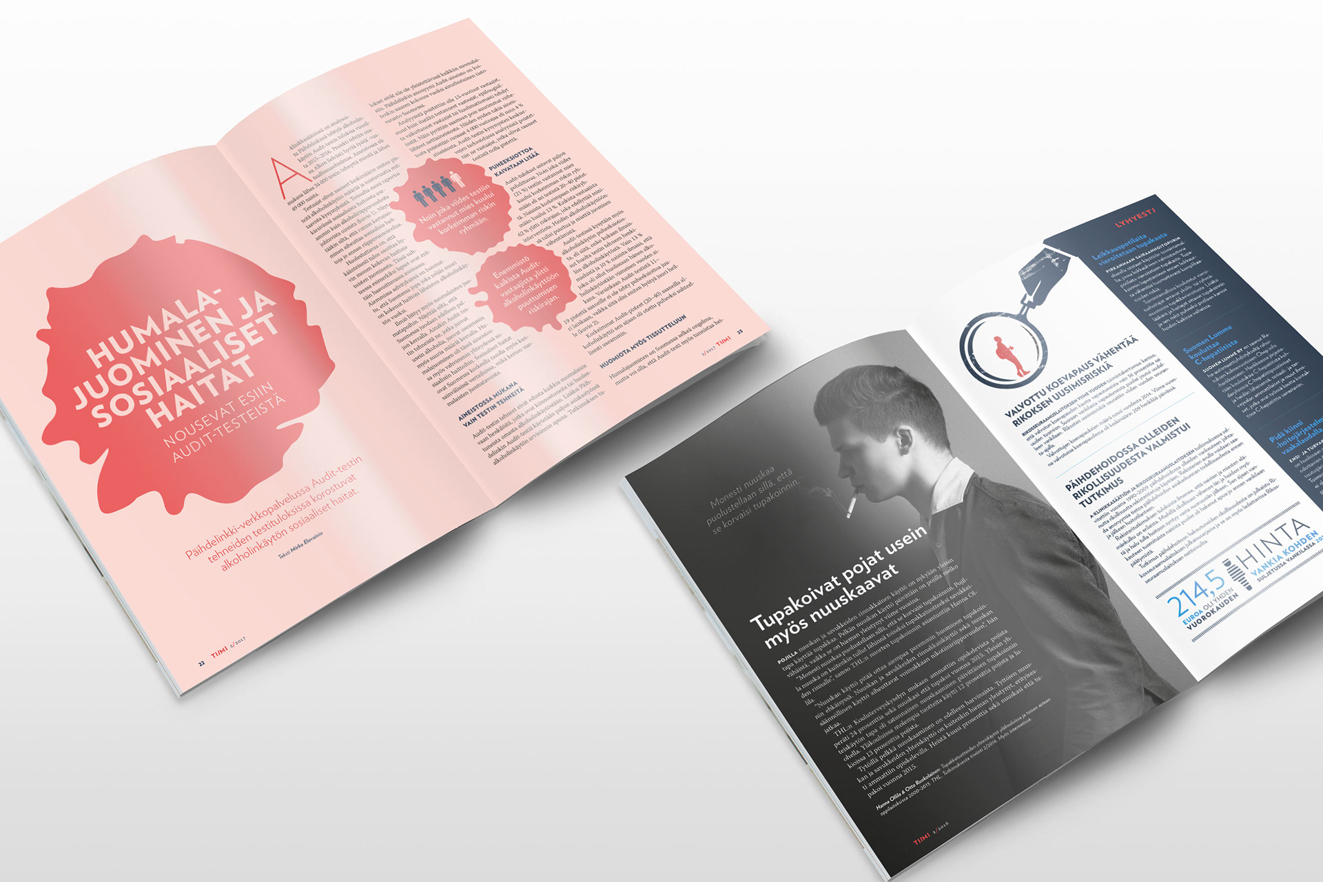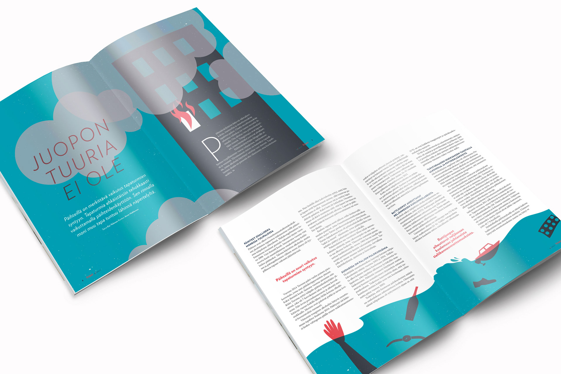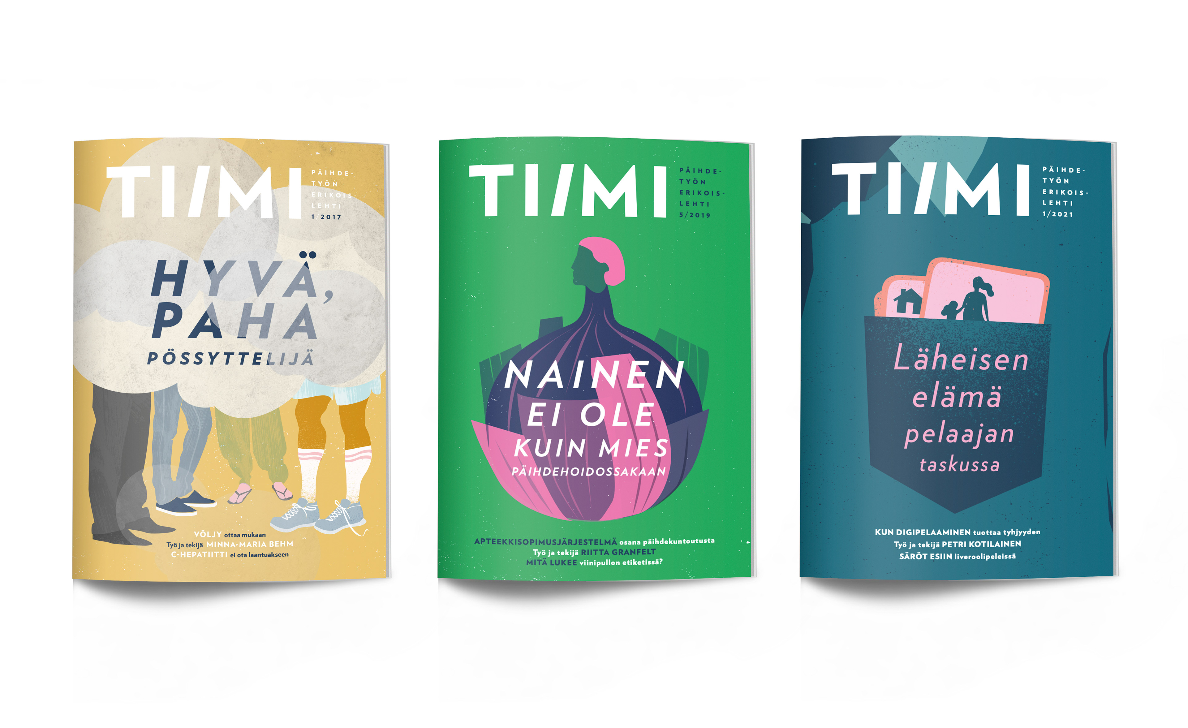 Visual identity, illustrations and layout design for Tiimi magazine.